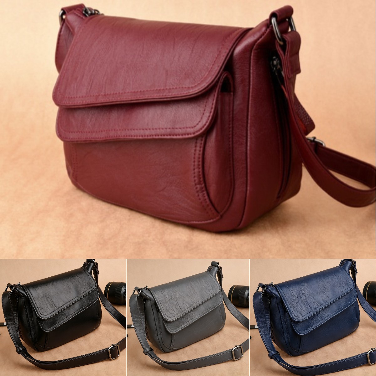 Дамска чанта за рамо от мека кожа с голям капацитет