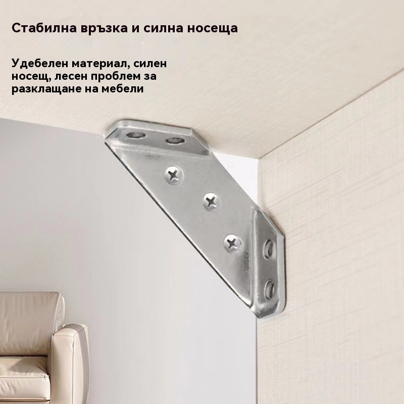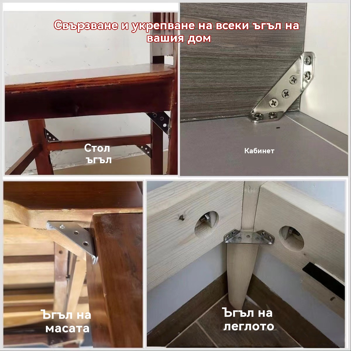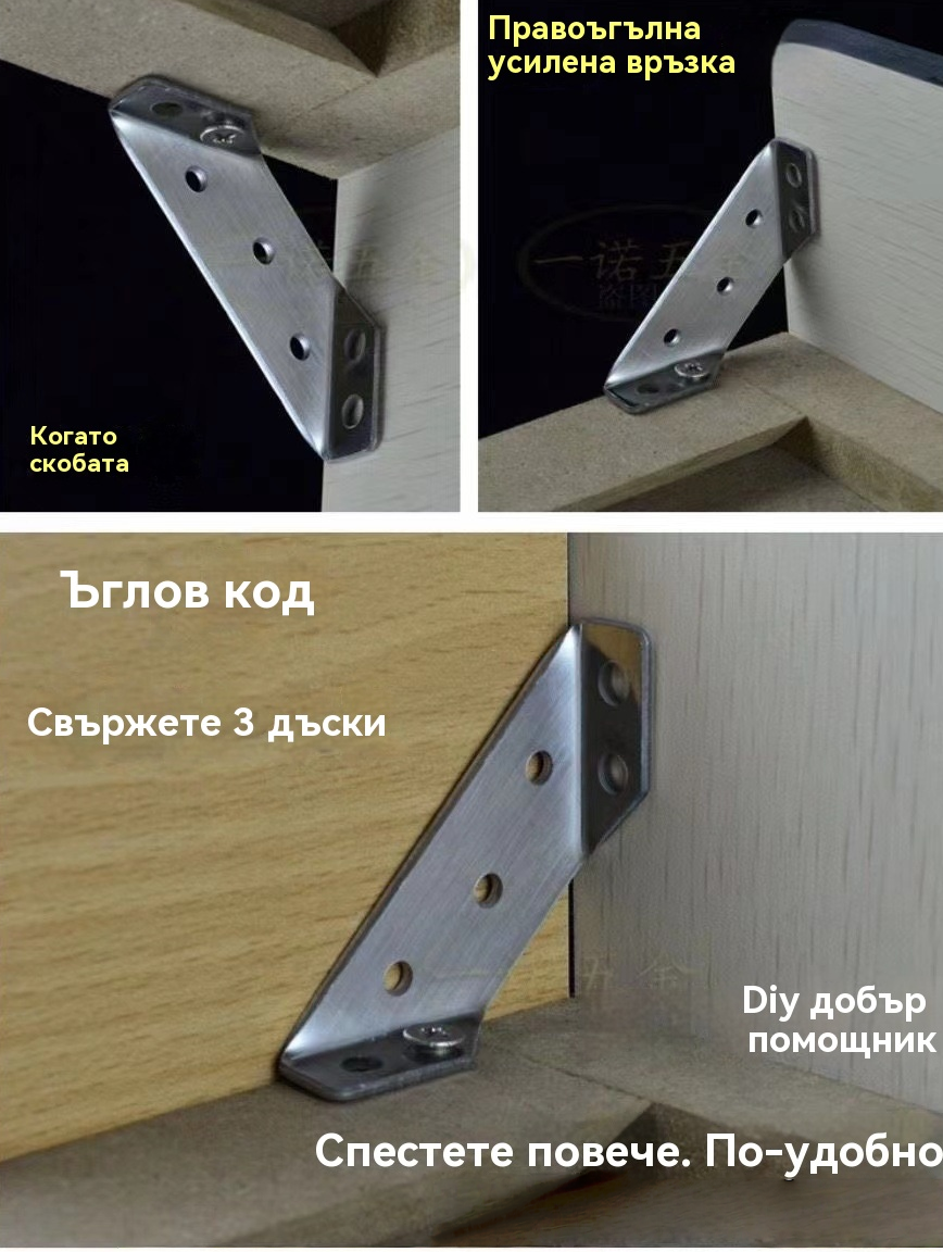 🏠⚙️【6 комплекта】Многофункционални ъглови скоби от неръждаема стомана, стабилни опори под прав ъгъл на 90 градуса, подходящи за гардероби, чекмеджета и др.