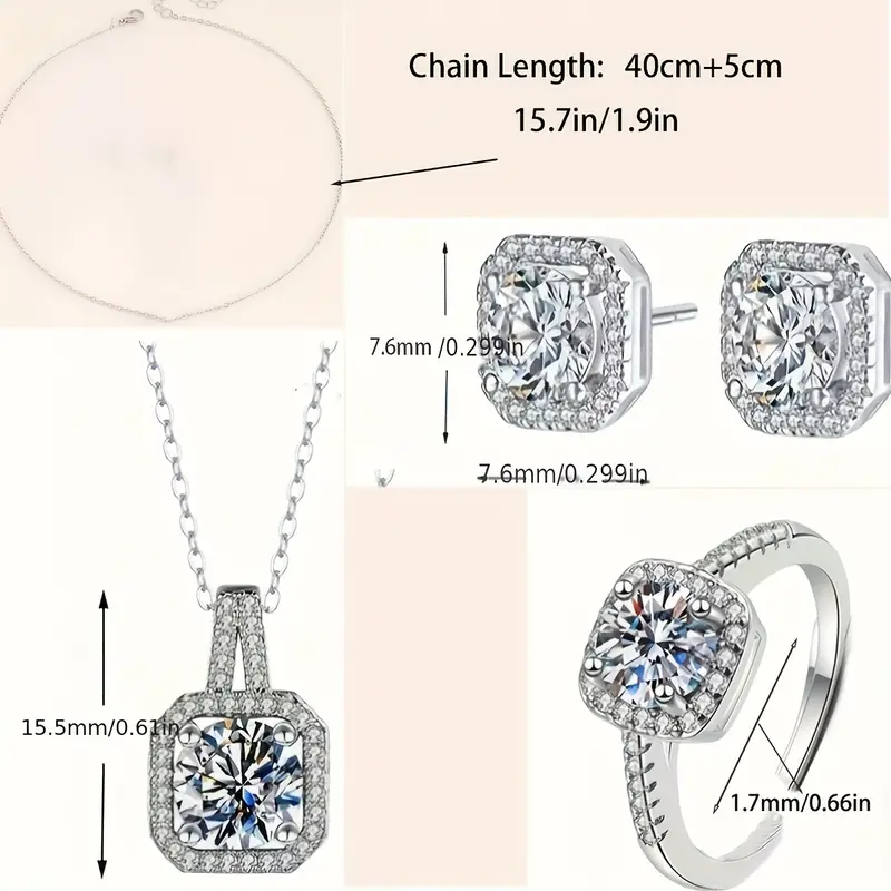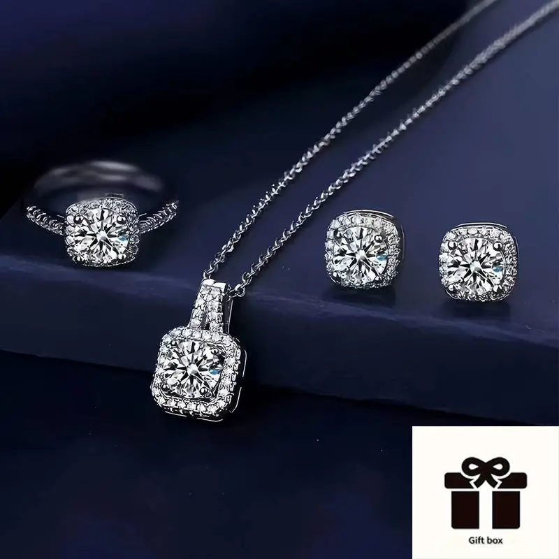 ✨Moderan ljetni stil jednostavnog stila 925 srebrni cirkon trodijelni nakit, (ogrlica + naušnice + prsten)