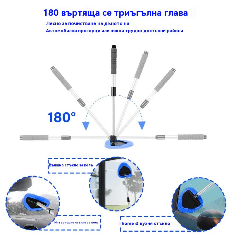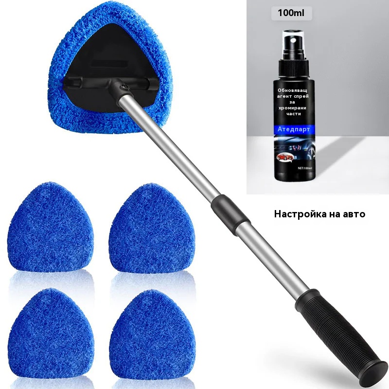🤩Комплект за почистване на предно стъкло на автомобил.разтегателен и въртящ се на 180°, 【1 триъгълни пластмасови части + 4 платнени калъфа】