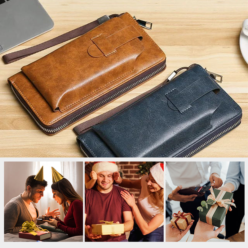 💼 Нов мъжки многофункционален портфейл с цип от естествена кожа, висок клас, плътен цвят, новаторски стил