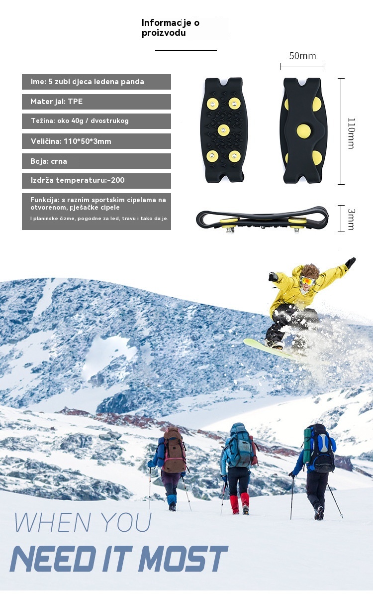 🚶🏔️Nevidljivi protuklizni rukavi za dereze s 5 zubaca, vanjske dereze, pogodne za planinarenje po snijegu, planinarenje, penjanje po stijenama i zimske ledene površine, obavezni dio za starije osobe.❄️【4 para】